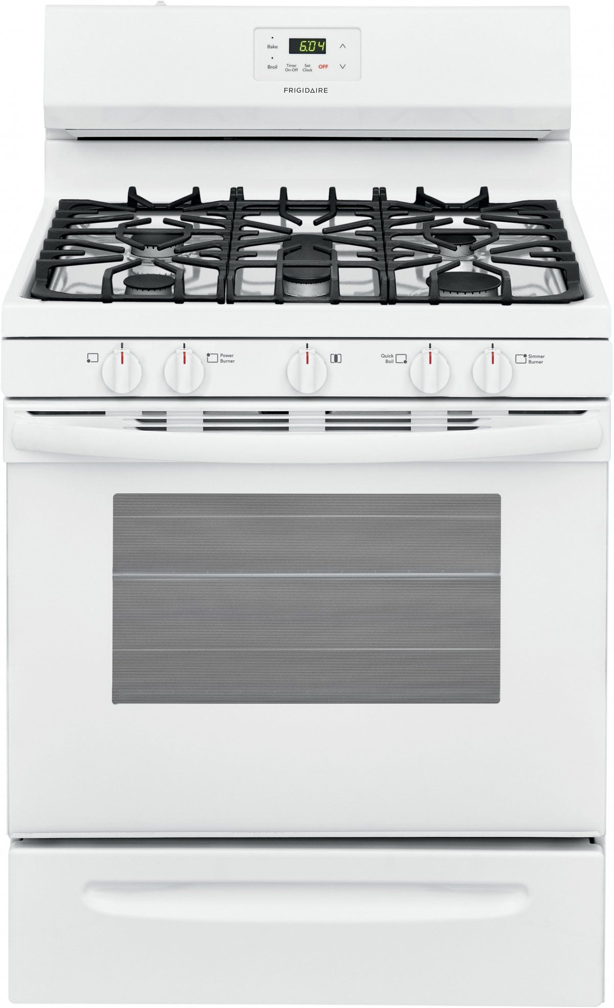 The Frigidaire 30" Gas Range gives you more cooking flexibility with a 5.0 cu. ft. capacity oven and storage drawer. The cooktop features 5 Sealed Gas Burners, including a 16,000 BTU Quick Boil Burner, 10,000 BTU Oval Burner, and a Low-Simmer Burner, so you can have precise temperature control with high and low heat. Stainless Steel exterior is durable and creates a premium look in your kitchen.Read More